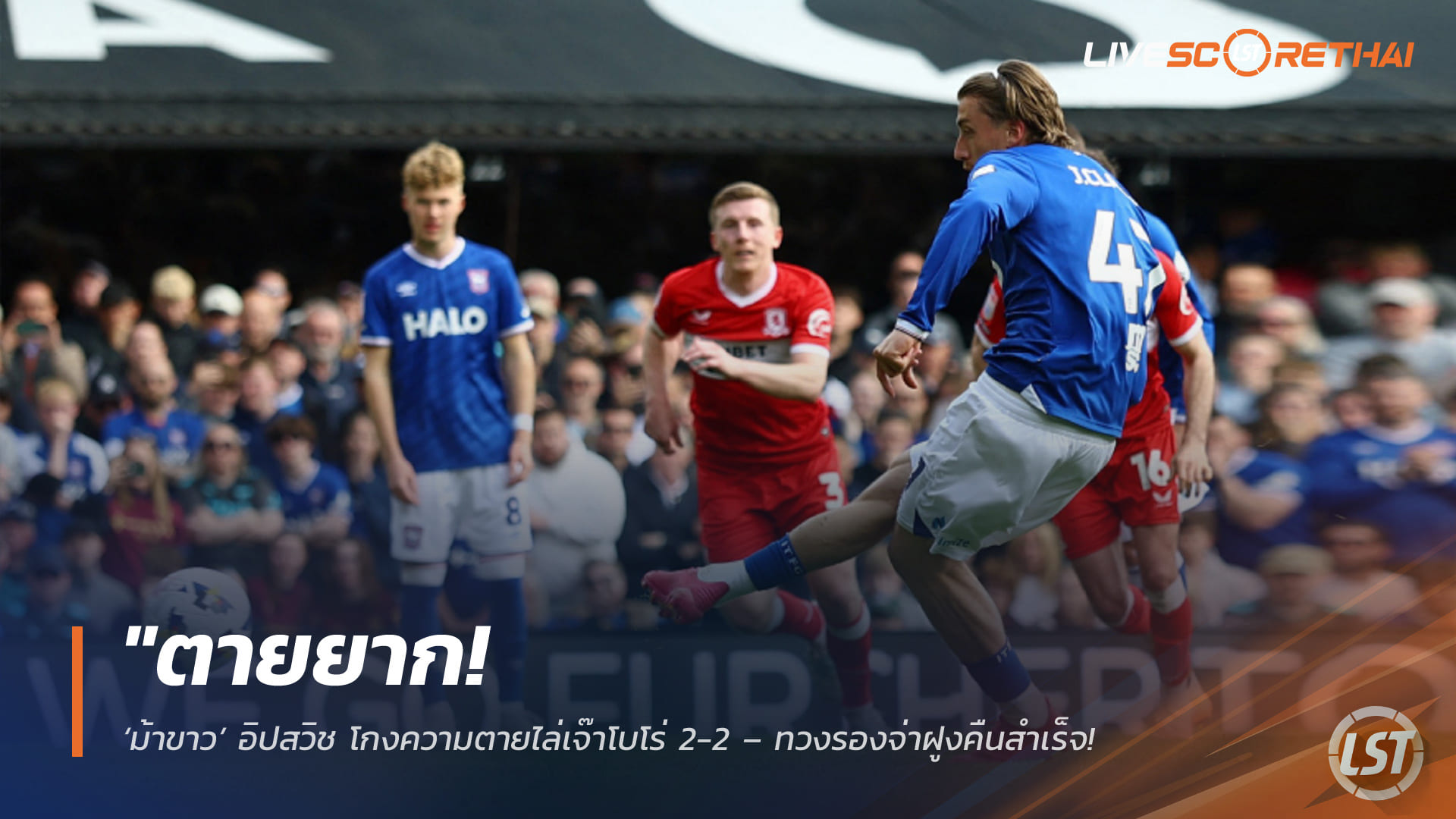 ดราม่าท้ายเกม: อิปสวิช ทาวน์ รอดพ้นความพ่ายแพ้คาบ้านหวุดหวิด หลังได้ แจ็ค คล้าร์ก สังหารจุดโทษตีเสมอในนาทีที่ 87 ช่วยทีมไล่เจ๊า มิดเดิลสโบรช์ ไปอย่างสุดมัน 2-2