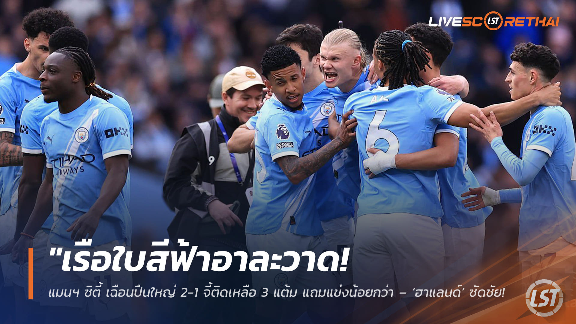 ฮาแลนด์ซัดตัดสินเกม: นาทีที่ 65 เออร์ลิ่ง ฮาแลนด์ กลายเป็นผู้ทำประตูชัยจากการล้มตัวยิงจังหวะชุลมุนในเขตโทษ ส่งให้ซิตี้เก็บ 3 แต้มล้ำค่า